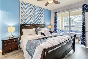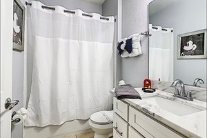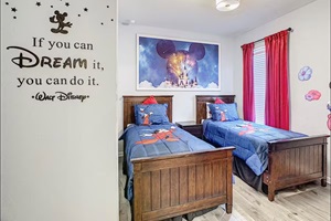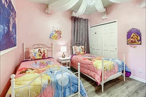 All four bedrooms are on the same level and consist of two king master bedrooms with private en-suites, a princess themed room with two twin beds for your little princesses, a Mickey themed room with two twin beds. All bedrooms are equipped with 50" smart TVs and cable.