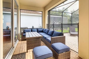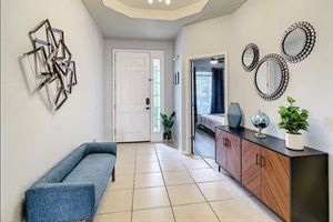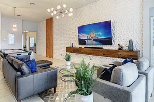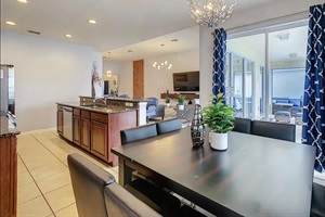 Pull into your very own private driveway upon arrival and walk through the front door into your home away from home. Step inside an open-concept living space filled with natural light, elegant finishes, and thoughtful design—perfect for gathering after long park days or enjoying relaxing resort-style downtime. The open concept living room is centered around an 82" 4K smart TV with a PS5 for all your entertainment needs. An air hockey table is right next to the space so you can play a quick game while waiting for everyone to get ready or while waiting for food to cook in the kitchen. The kitchen is well-equipped with everything you need to prepare a delicious meal or grab a quick bite to eat before heading out the door. Dining table has seating for 8 and counter seating for 4.
