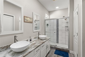 5 bathroom: 2 ensuite master walk-in shower bathrooms 3 full bathrooms (complementary shampoo, conditioner and body wash in each)